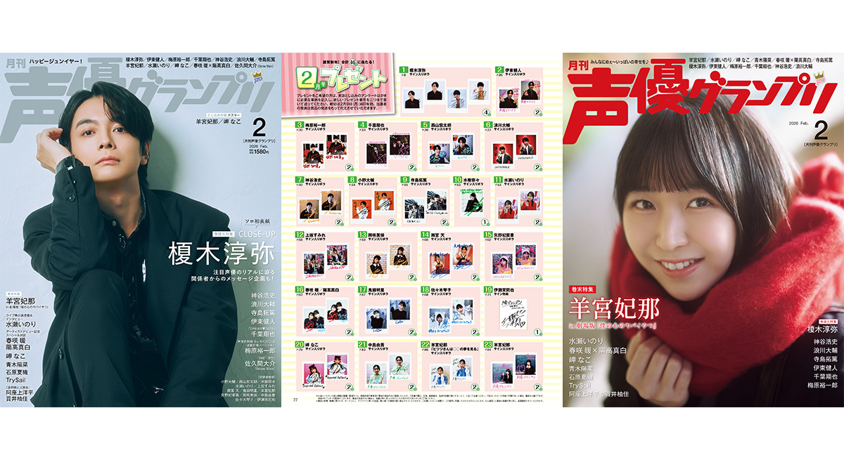 【声グラ2月号】榎木淳弥さん、 羊宮妃那さんのサイン入りポラなど合計46名に当たる豪華読者プレゼントを公開!