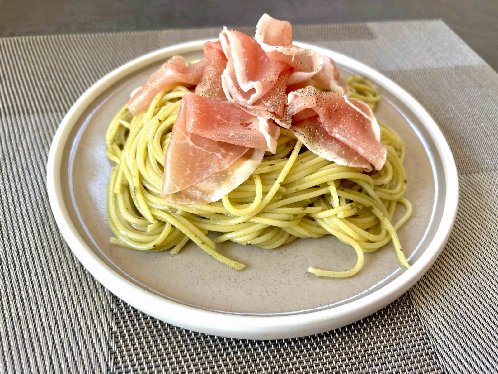 アレンジで冷蔵庫にあった生ハムを乗せてみました!