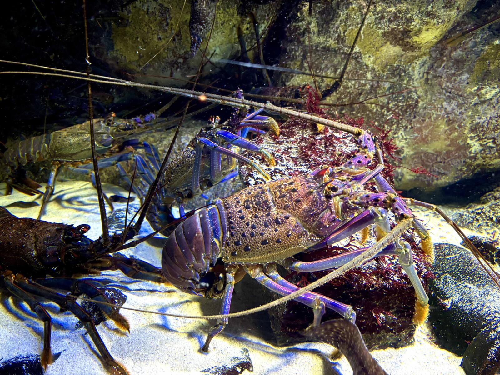 この水槽の中には、壁際の岩にもビッチリ数えきれないほど海老さん達がいて正直ギョッとしますが、大満足の迫力です!