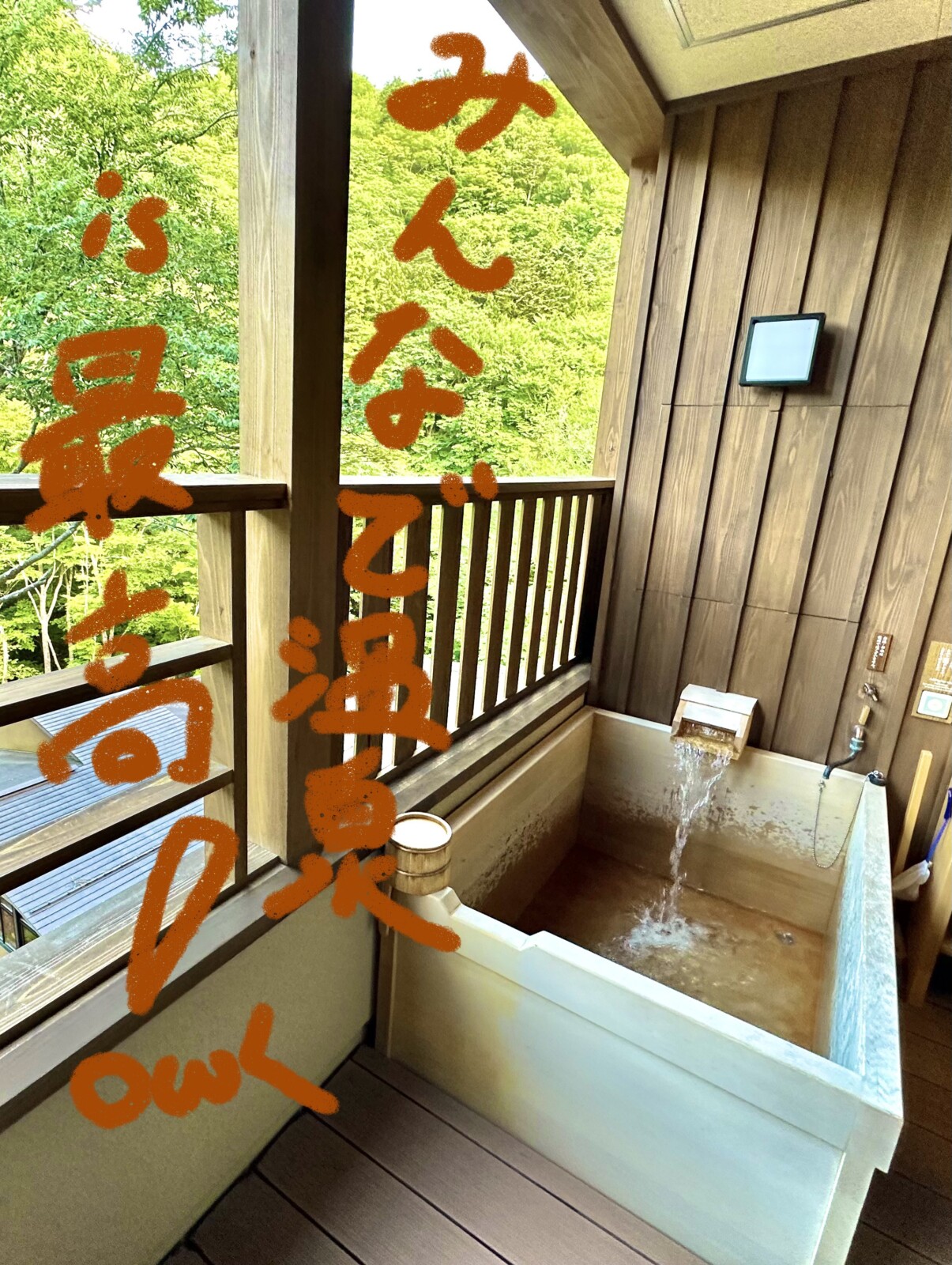 | 素晴らしいテーマ……! ズバリみんなと一緒に温泉に行ってみたいです! せっかくみんなと会えるならそれぞれにあったおもてなしをとも考えましたが、 温泉地をめぐりながら、 「身体が動きません。許容値を超えた運動量です。」 みたいな会話をしたいし……。 「中村ー!おい、入んないのかー?」 みたいなことになってカオスになりたいし夢が広がりまくりますね! 写真は各部屋に個室露天がついている宿に泊まった際のものです。 最後に大切なもの貼っておきます。