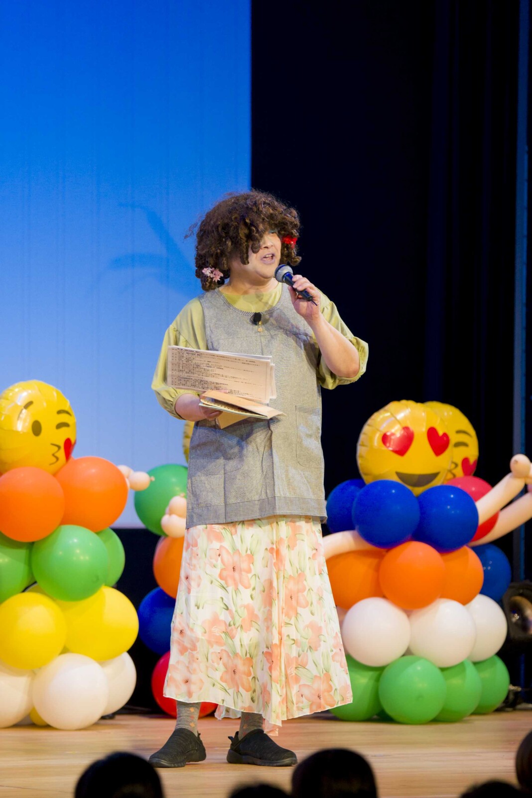 倒れているさとたくを発見したのは、やっぱりこの人、家政婦のぶこ。そしてこのタイミングで数々の事件を解決(?)してきた警視庁のエリート・明ッ智警視と、迷名探偵コンナンが合流。役者がすべて揃ったところでさっそく事件の解決を試みるのかと思いきや、お客さんを犯人扱いしてみたり、真実は三つとのたまわってみたりと、いつもどおりハチャメチャな展開に。これでは埒があかないということで、のぶこによる回想シーンへ。ちなみに回想シーンへ入るSEはお客さんと一緒に大合唱。コロナ禍では一切できなかった声出しが解禁されたことを実感する、嬉しい瞬間であった。