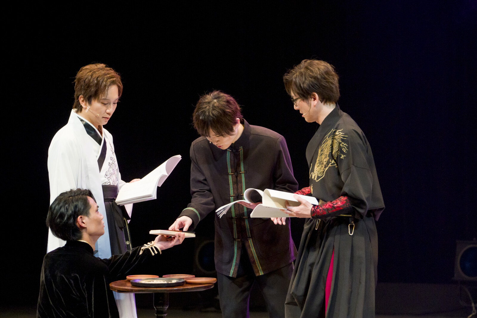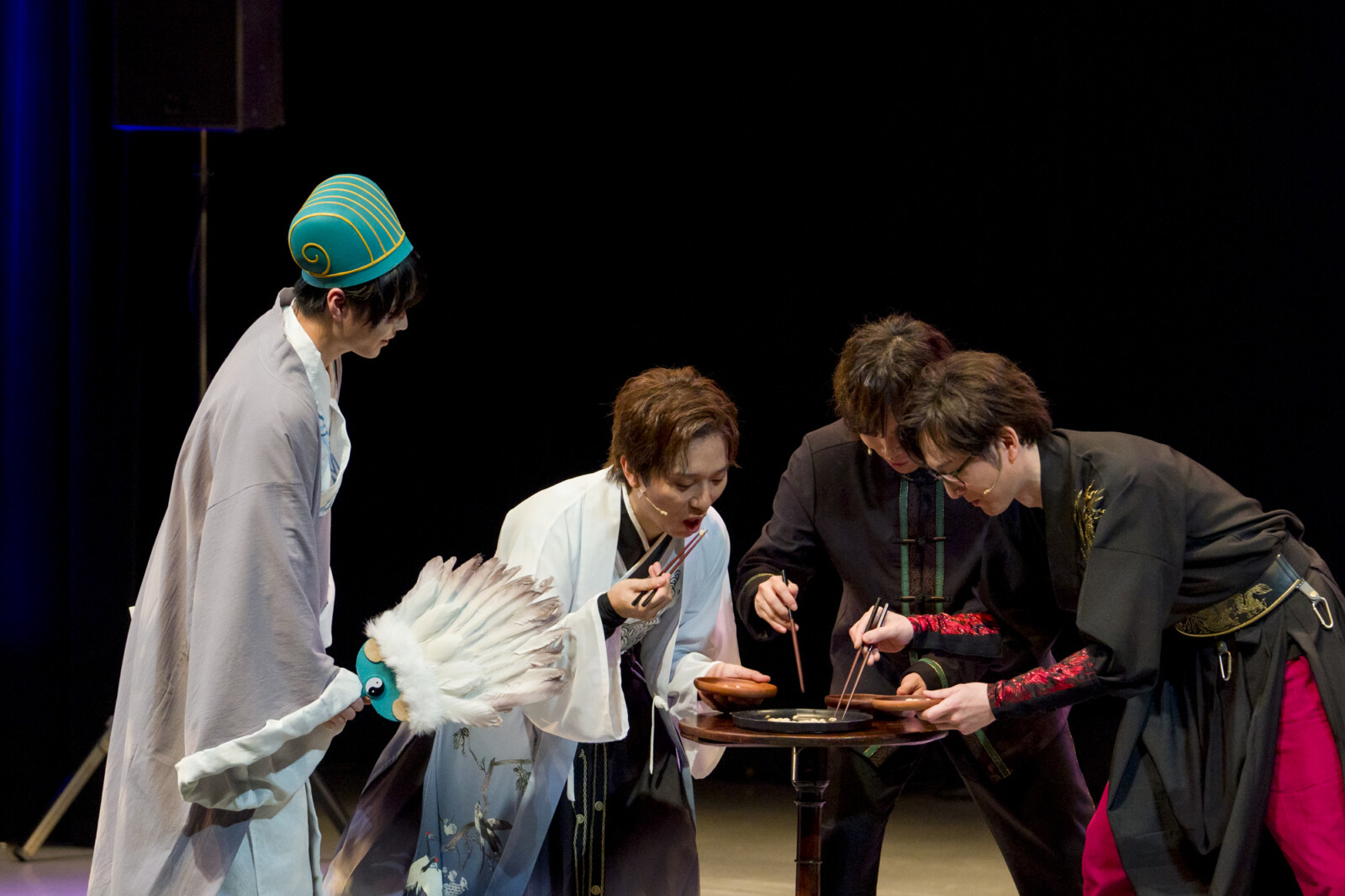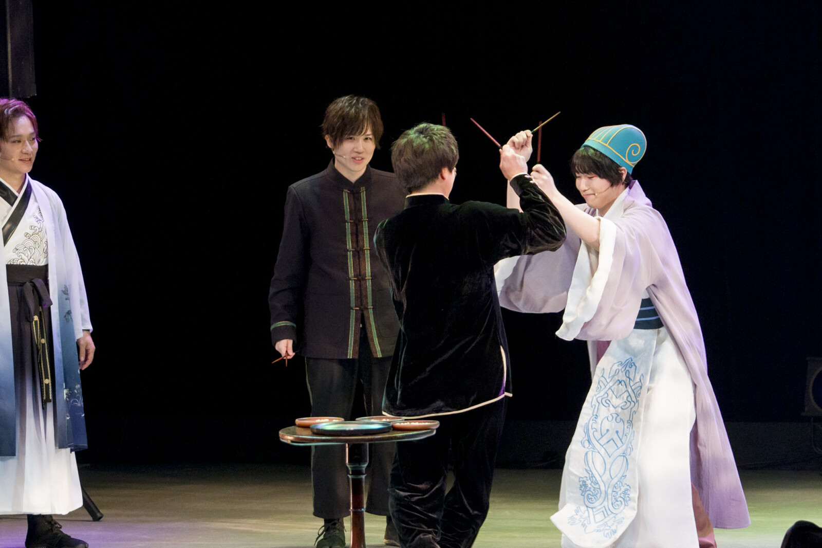 アフタートークでは、宮﨑さんが「昼の部で諸葛亮を演じた濱野大輝さんのアドリブがすごかったので、昼夜逆のほうがよかったです」と苦笑い。そのほか、バラエティパートの思い出を語ったり、武器をお客さんに持ってもらうなど、短い時間ながらも楽しく公演を振り返っていった。