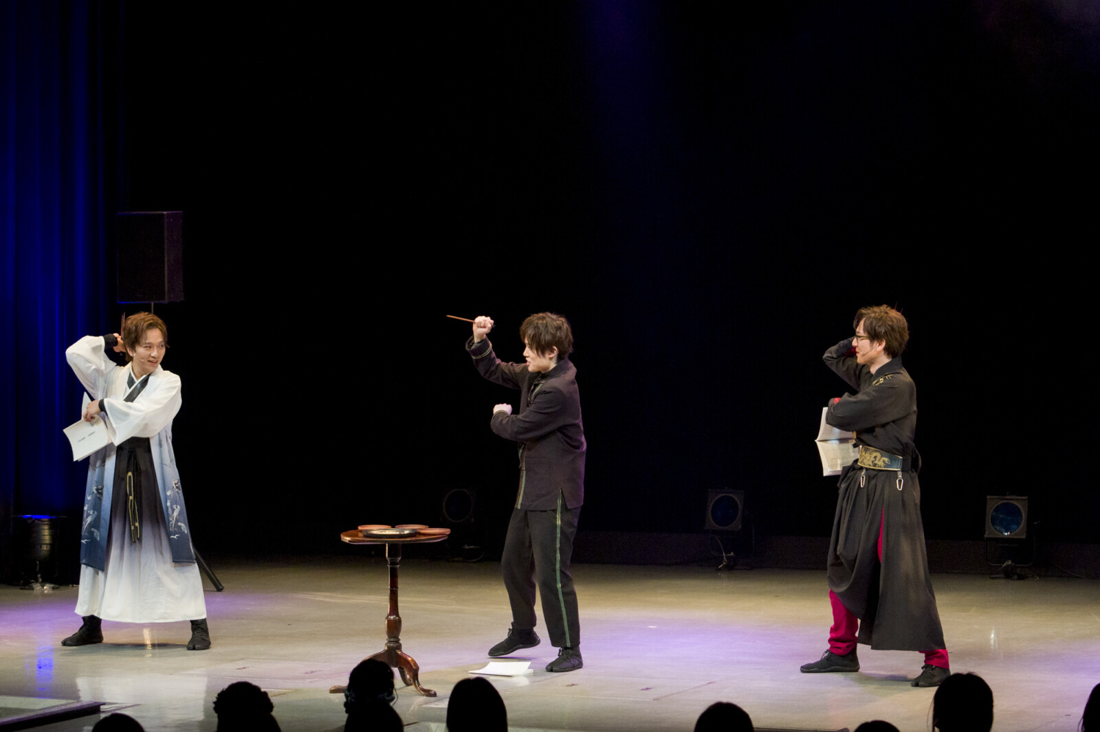 小松さんプロデュースのイベントで注目すべきは、なんといっても朗読・アクション・舞台をクロスした、他に類を見ない「ハイブリッドアクション朗読劇」。今回は三国志の世界をオマージュした、闘技場を舞台とした「代理戦争」の模様が、キャスト陣による迫力のアクションとともに披露された。