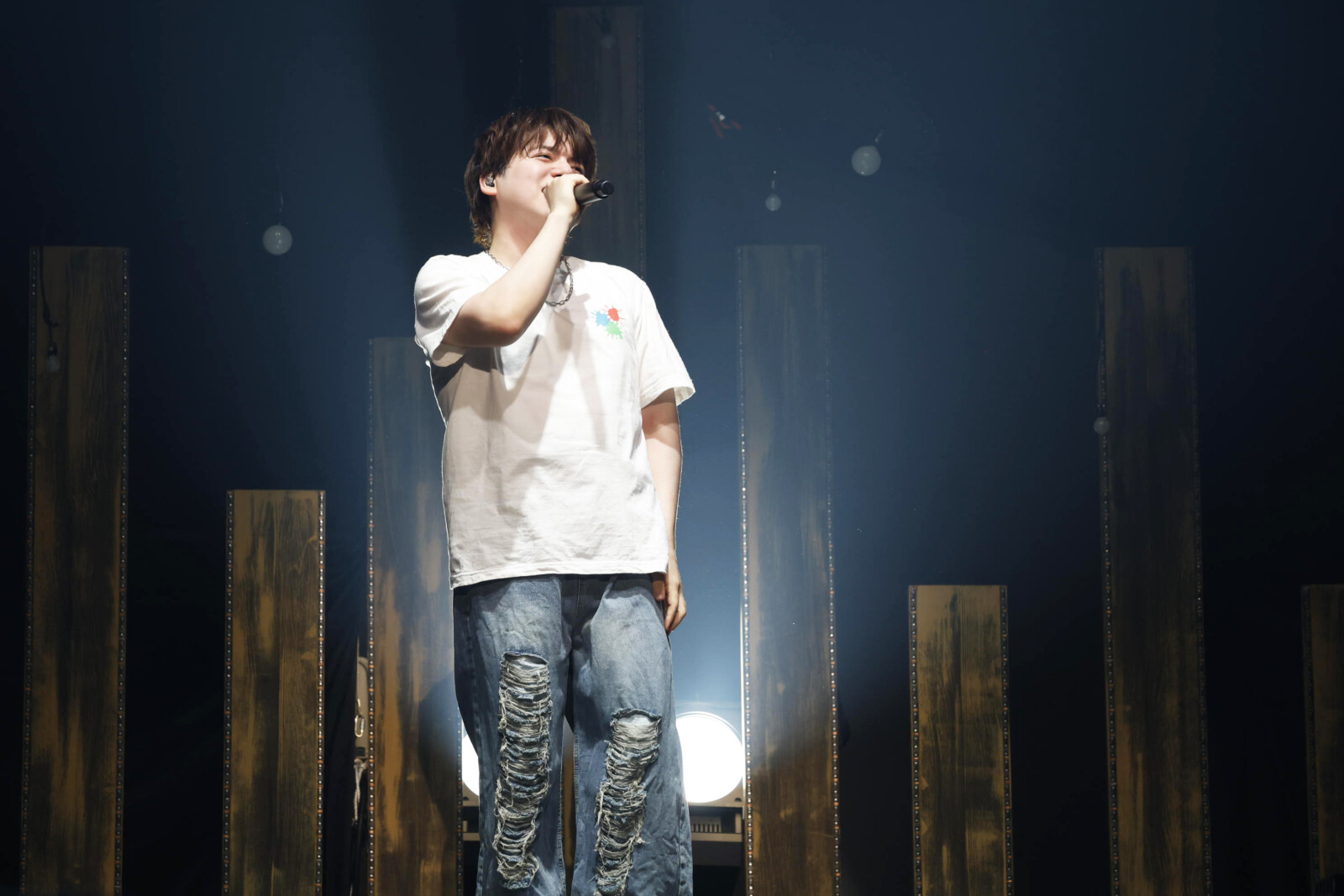 声優という職業柄もあってか、楽曲ごとに色を変える歌唱表現の引き出しの多さに圧倒される。そしてTVアニメ『あひるの空』エンディング主題歌にして、彼のライブにおける鉄板曲に育っている「Over」。マイクスタンドをステージ脇に思い切り蹴飛ばすパフォーマンスやコール&レスポンスで、会場のボルテージをさらに引き上げていく。