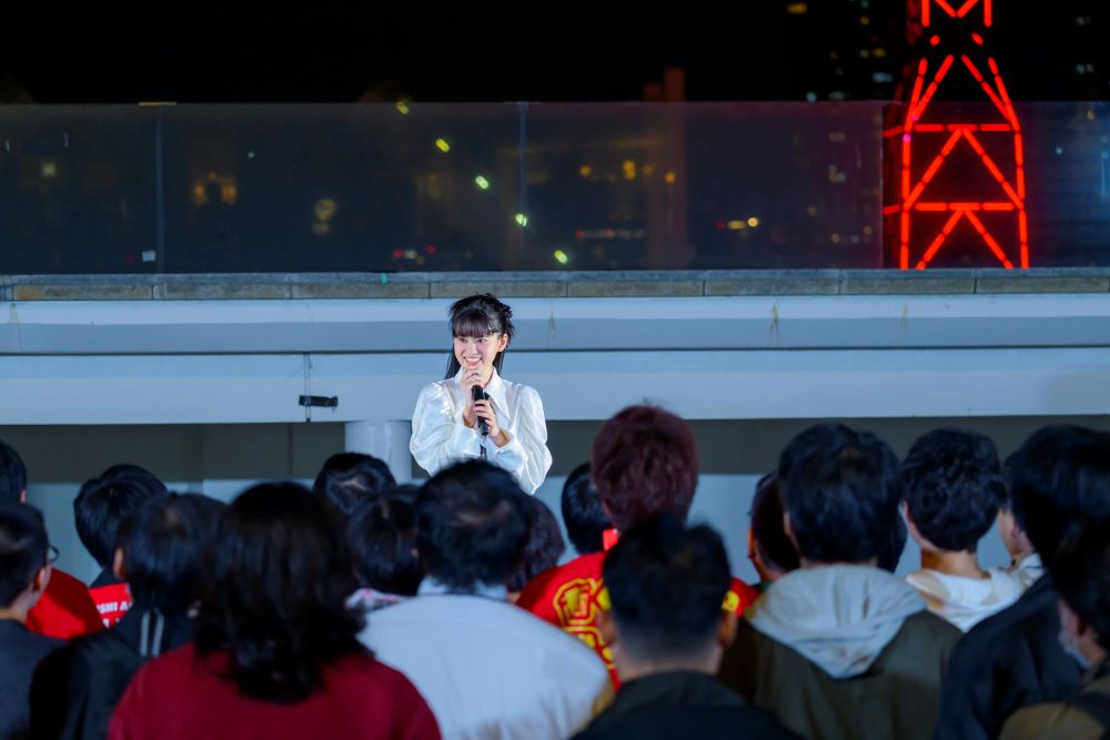 陽が沈み、辺りも暗くなった17時半。大西亜玖璃さんがステージに立つと、いつもより控えめな声援が送られる。