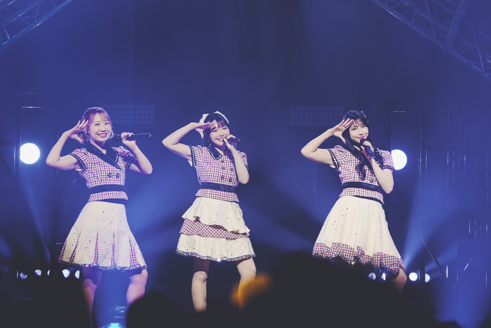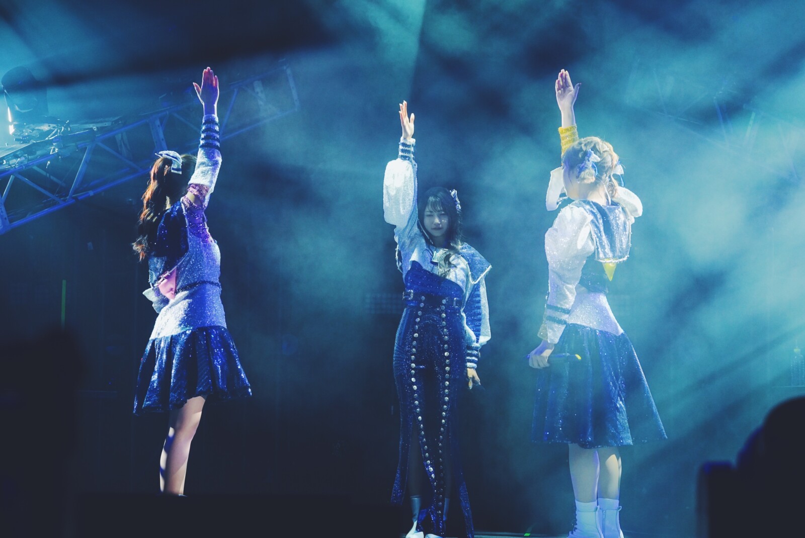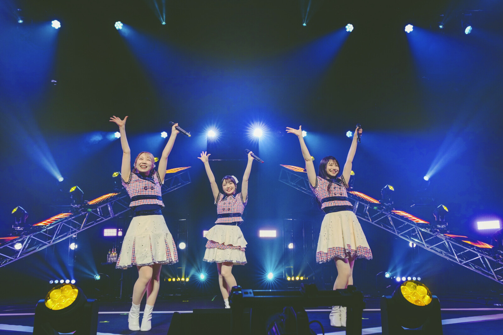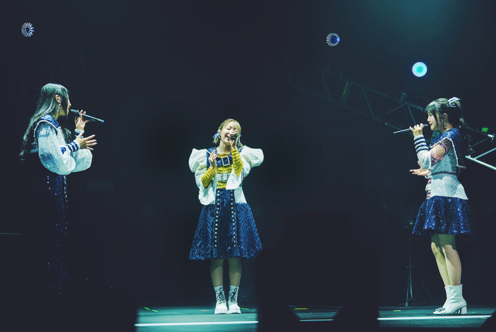アンコールは「Chip log」で陽気にスタート。雨宮さんが掃除係、夏川さんが犬、麻倉さんが舵取り兼飼い主になりきった寸劇風のパフォーマンスでも会場を楽しませた。そして、最後の曲に移ろうとしたところで、会場のファンが「ツアー完走、おめでとう!」の掛け声とともに客席を3色のペンライトで色分けするというサプライズでお祝い。びっくりしながらも大喜びの3人は客席をバックに記念撮影し、最後の1曲「マイハートリバイバル」で大団円……になったかと思われたが、客席の熱量は収まらず「もう1回!」のコールに応えてステージに戻ってくる3人。ここで歌ったのは「Sail Out」で、1曲目に歌ったときとは対照的にフォーメーションも何もなく、肩を組んで歌ったりするラフなノリ。「楽しい!!」ととびきりの笑顔でゲラゲラ笑いあいながら、最高の形でゴールしたツアーとなった。