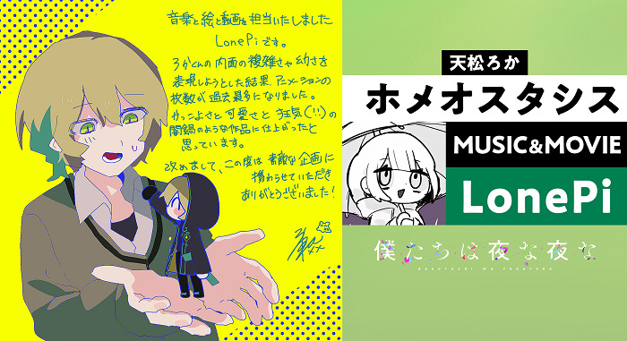 そんな嫌な気持ちに蓋をする気持ちを【ボカロP‧LonePi × 歌い手‧ふぉるて】が歌に昇華!! 今回リリースされる「ホメオスタシス」は、心が壊れないようにろかが自分を欺き続けようとする狂気を描いた楽曲。MVは楽曲と同じくLonePiが担当。ホメオスタシス(恒常性)に振り回される複雑な内面を表すように目まぐるしく変わる様が、重ねられる歌詞の押韻と共に描かれる。ストーリーと併せて要チェック!