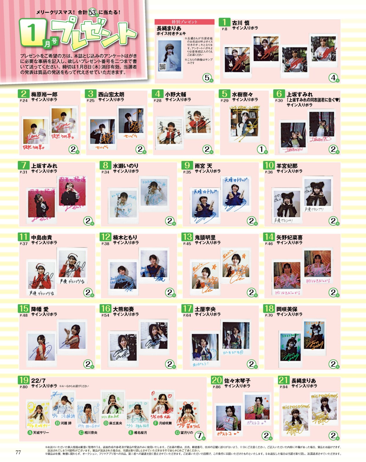 『声優グランプリ1月号』読者プレゼント一覧(敬称略)