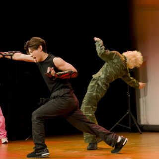 最後に小松さんは、「アイドルがライブ中に敵に襲われたら」という特殊なシチュエーションでの殺陣を実演。敵を飛び越えたりしながら即興の歌を披露し、最後はバック回し蹴りを決めて曲のキメポーズに戻るという一連の流れを即興で構築。実際に音楽に合わせて、アイドルとしての華とアクション俳優としての技を融合させたパフォーマンスで会場を沸かせた。