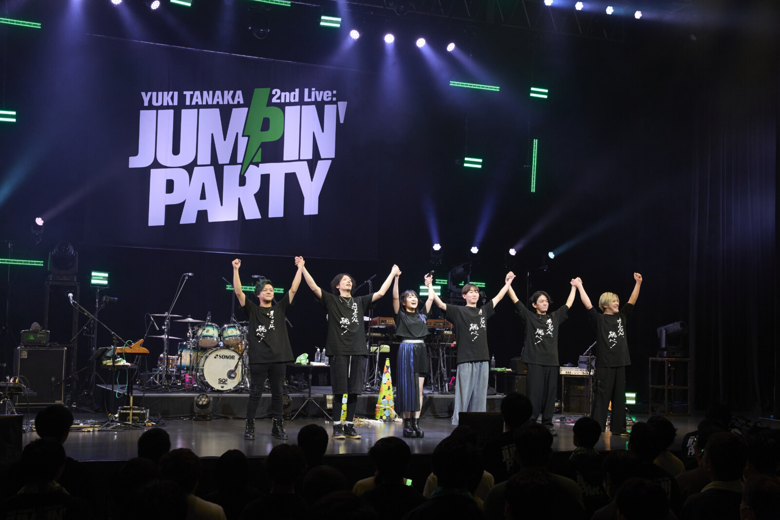 チケットは完売、当日券も売り切れて大盛況となったこの日。田中さんの好きな色である緑色の照明が開演前の会場をグリーンに染め上げて気分を盛り上げる。