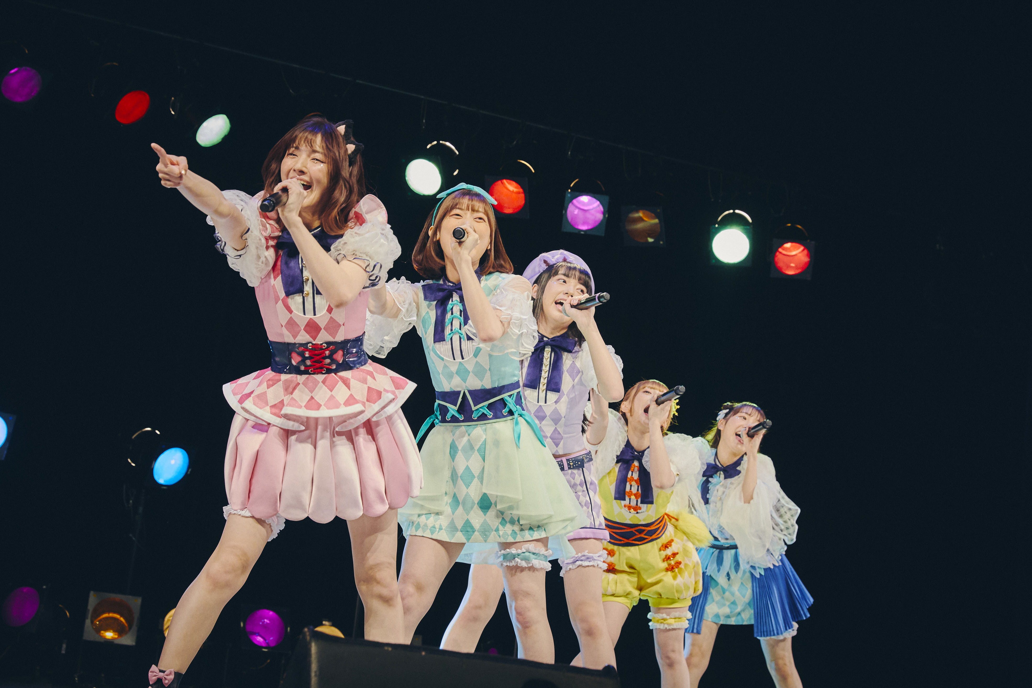 情報解禁パートに続いてミニライブがスタートし、一気にペンライトの光に包まれる会場。花道を使ってのSmewthieの自己紹介楽曲「ハレルヤビート」、MV23万再生超の「bitter sweet darling」2曲続けてのパフォーマンス。そして『東京ミュウミュウ にゅ〜♡』OP主題歌「Cat!!してSuperGirls」が初披露された。初めてフルで聴く本楽曲と『東京ミュウミュウ にゅ〜♡』らしい可愛らしさのつまったダンスに客席が魅了された。