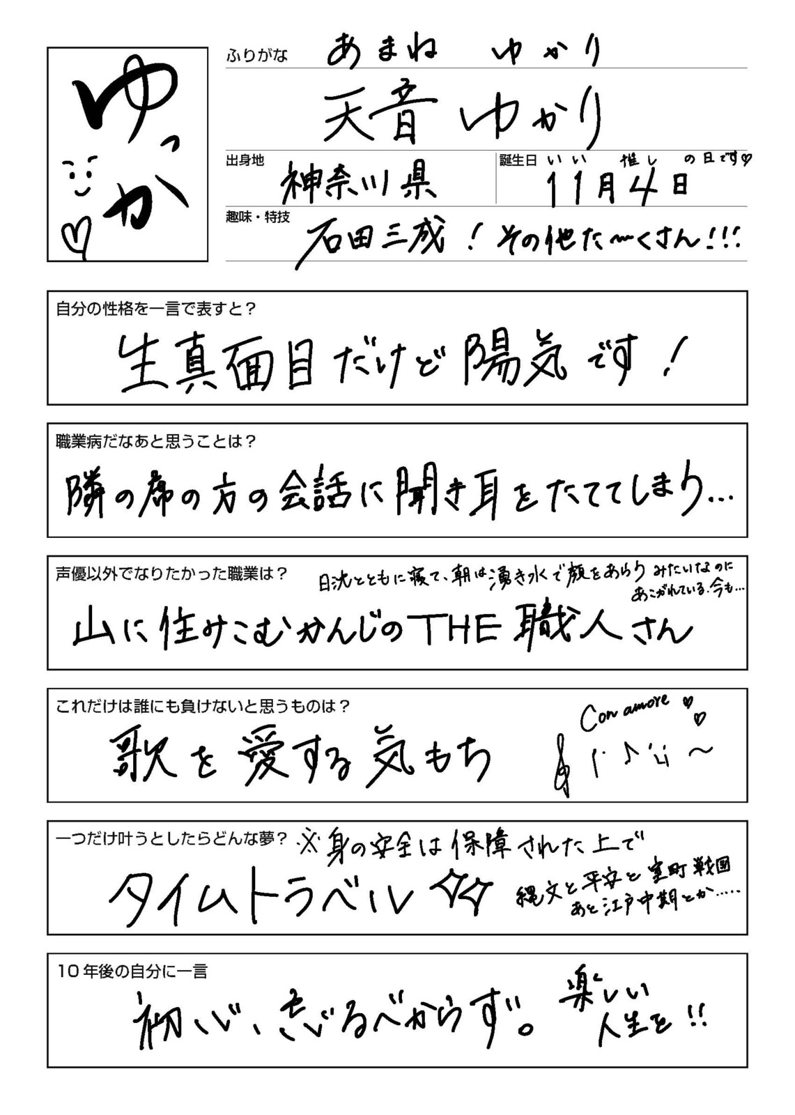 天音ゆかりさん手書きプロフィール